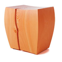 The units are composed of oblique slats in natural beech and maple. The large units may stand alone on plate feet.