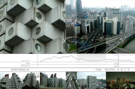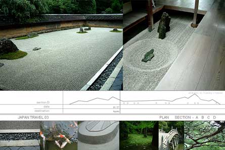 A photographic documentation of the travels in Japan of two scholarship winners; Roche Scholarship winner Colin Franzen and SOM Traveling Fellowship recipient Zane Karpova. Four "sections" cut across the island were chosen as paths of travel and documentation. The images are keyed to these lines of investigation revealing a wonderful array of landscape, architecture, culture and space.