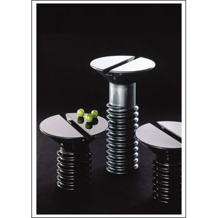 "The idea of having an oversized screw as a table seems natural for a versatile man like Eero Aarnio working on industrial design, furniture and architecture. Screws are used in every house but mostly hidden - why not honor them as visible objects? Place them as a side table in the living room and on the veranda or the higher version in cafeterias, coffee shops and bars."