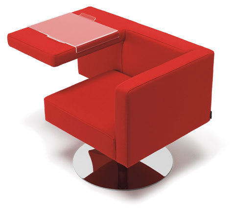 "SOLITAIRE, designed by Alfredo Häberli for Offecct, is an upholstered chair with an organic shape that is designed in one piece. One of SOLITAIRE's armrests is like an integral tabletop, for reading or writing or as a side table. The chair is equally suitable for the home and dynamic workplaces."