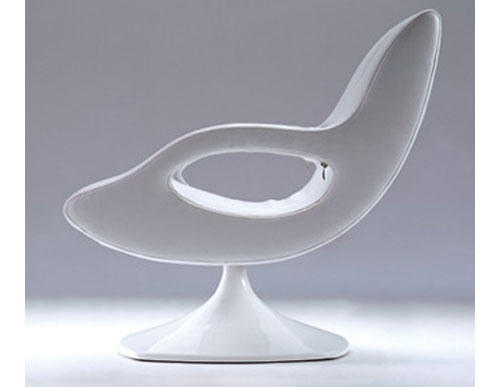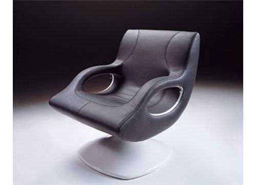 Swing Chair Furniture — August 6, 2004 Posted by Anthony Swivel armchair by Karim Rashid for Frighetto Swivel armchair with shaped steel section frame, covered with moulded polyurethane foam. Available in leather and fabric. Swivel base. Designer: Karim Rashid Link: Frighetto Reference: Karim Rashid (L+L)