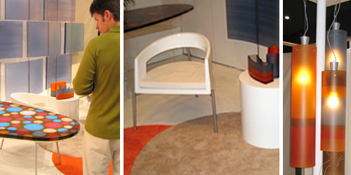 Cool translucent resin and opaque fiberglass furniture and light fixtures.