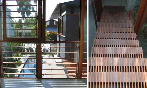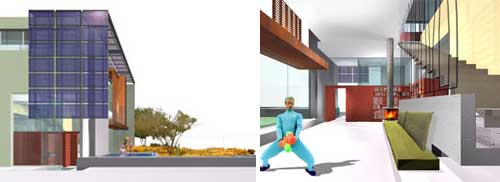 "When it was built, the residence lead the way in demonstrating and employing many integrated environmental strategies including: solar hot water and radiant heating and cooling, natural ventilation by automatic electric skylights and windows, whole house ventilation and screened combination doors and hopper windows, and natural and nontoxic interiors and finishes."