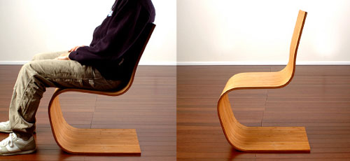 "The Spring Chair's single part form minimizes weight and material waste. Its ergonomic design is contoured to the body. The strength and flexibility of bamboo create a gentle rocking action in a sled-based chair.Insted of using birch ply, douglas fir, or any other typical "tree" wood, Adapt has chosen to use bamboo, which I have learned, is not a tree, but a giant grass. For an informative introductory about bamboo and its many uses, check out Adapt's materials page.