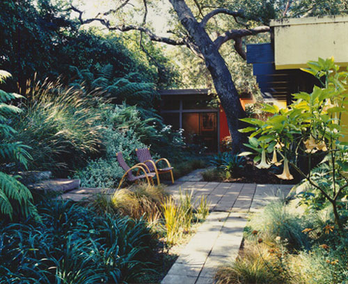 Steiner brings a modern sensibility to his designs which are wonderfully composed and structured architecturally to create outdoor living spaces and extend and/or transform the architecture of the house. He is especially adept in his planting plans which (to borrow from his website since this says it best) "are distinguished for their graphic quality, successional bloom, subtle modulations of tone and year-round foliage interest."