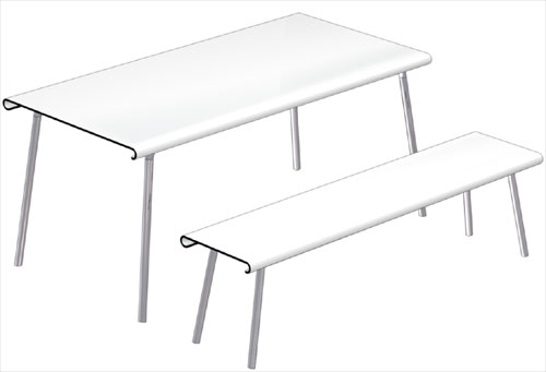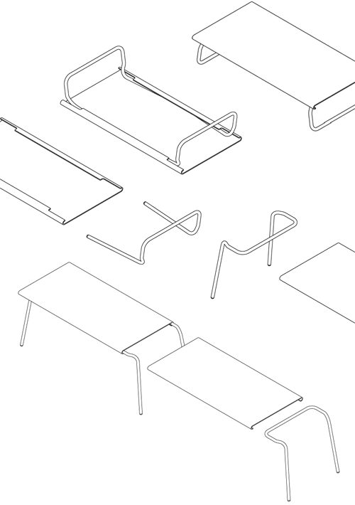 The form is elegantly simple, a table reduced to the minimum components. The top is made from compactforming HPL which can be made in any color. The tube steel legs can be removed by hand with no tools, and allow for two different table heights. The design also makes the table easily portable.