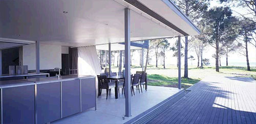 The house is beautifully linked to its site and landscape. In fact, architects Jeff Fearon and Tim Hay conceived of the house and landscape design together as an integrated whole. The plan assimilates indoor and outdoor living spaces with window walls which slide away to open the house to the extensive decks and patio spaces.