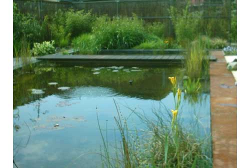 The gardens of Harry de Visser finds their origin in the context as an expressive artist and illustrator. The designs are exclusive, monumentally and frequently minimalistisch of form, but spherical. Main point for a design is the architectonic half-measure sheathing. Architecture and garden must a relation with each other have. Entirely must radiate rest and space. By devising particular elements, every garden gets its own character. take water design, architectural elements, visibility lines, contrast, functional beplanting, reduction and environment prominent. (Babelfish)Update: We just got word from Harry. Beplanting "means all kinds of plants that you use in a garden." Simple enough, thanks Harry!