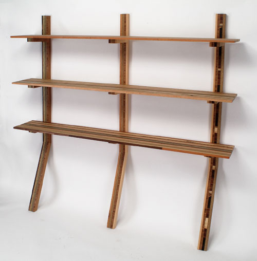 We received an email from Carlos over at Scrapile alerting us to several new pieces in their 2005 collection. Images we received include a wall-mounted shelving system, a circular table with tripod legs, and accessory boxes in several sizes. Scrapile produces their products out of discarded wood from local wood shops. Thanks, Carlos!