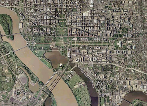 Pruned's post touts the merits of TerraServer, a site that I also prefer for aerial imagery and shows views of Robert Smithson's Spiral Jetty and Michael Heizer's Double Negative (beautifully manipulated images, by the way).