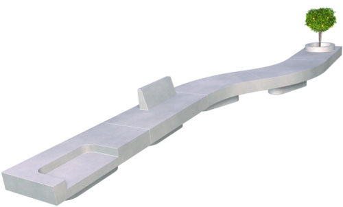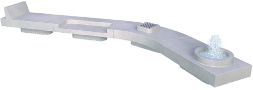 Designs are varied, including basic benches, benches with recessed seating, with back and arm rests, fountains, and tree wells.