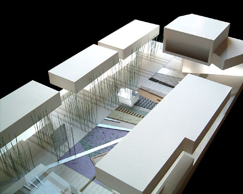 Shanghai University Hub: a set of pedestrian plazas designed as a "graphic carpet" of recovered urban materials. This project was featured at MoMA's Groundswell exhibition.