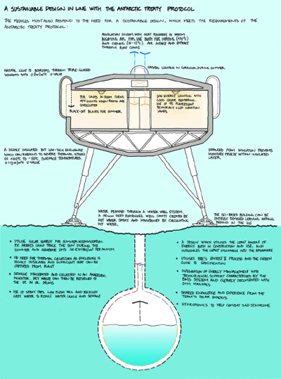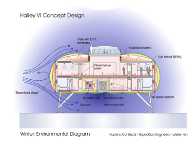 Intended to be a amalgam of the final three proposals submitted by Buro Happold and Lifschutz Davidson, FaberMaunsell and Hugh Broughton and Hopkins/Expedition/Atelier Ten, Halley VI will be a model of sustainability, easily transported by sea and assembled on ice shafts with units large enough to hold research teams in comfort for extended periods of time. Minimal impact to the environment is a top priority, and the design teams have come up with some innovative proposals for minimizing the footprint of the station, as well as for plumbing and waste management. The temptation to liken the designs to the stuff of grad schools is tempting, but it is the technology that makes them viable, practical and cool.