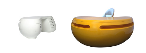 In 1969, the renowned French sculptor Maurice Calka issued something different: the Boomerang desk. A sexy molded fiberglass and plastic desk. The largest version, the PDG, came with a matching molded chair and personalized control panel was enough to impress President Pompidou who owned one in white and placed it in the Elysée Palace; the contrasting Baroque and 70's plastic fantastic raised a few eyebrows back then. Manufactured by Leleu-Deshays they are highly sought after, but only 35 were produced as a limited edition piece. Recently, a Boomerang desk came up for auction and was sold for 29,300 Euro (roughly 35,000 USD).