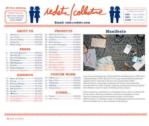But Redstr serves up more than just novelty items, they design furniture and use green and recycled materials. They will also give you a bonus gift with purchases of over $300. Gifts like a can of soda or a Design Sickness Bag. It's all about consistency. Besides, any company with a working Manifesto is worth checking out.
