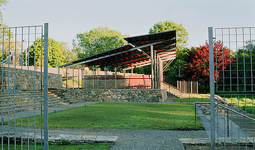 Yet when viewed from below, as the true breadth of terraces and masonry walls becomes more apparent, the scheme’s dual nature is realized: it is both a traditional terraced display and an active, modern sculptural form whose essential expression is derived from the site’s specific conditions.