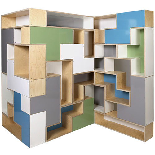 Brave Space's flat pack version of their block-game shelves