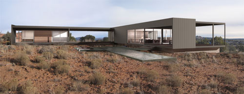 Marmol Radziner Prefab is able to design prefab homes in virtually any size or configuration, taking into account site considerations and personal preferences. The Utah House 1 features 2,500 square feet of interior space, 1,720 square feet of exterior deck space, accommodating three bedrooms and three bathrooms. The home will be prefabricated entirely in the factory and transported for site installation. The home features Structural Insulated Panels (SIPs), a recycled steel frame, floor-to-ceiling windows, custom cabinets, and concrete tile floors. As part of Utah House 1’s green design, solar panels supply electrical power to the home.