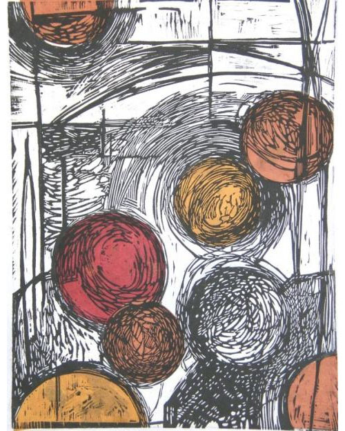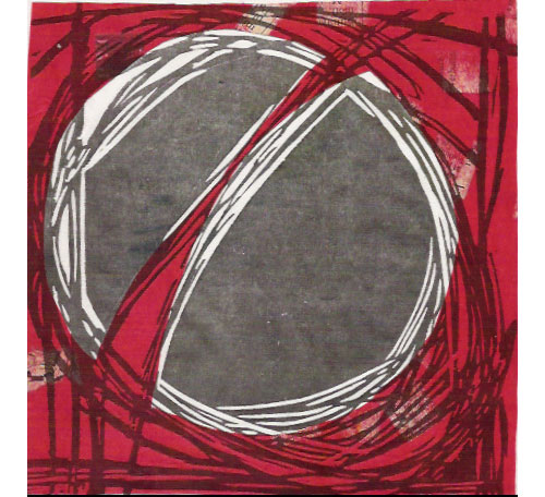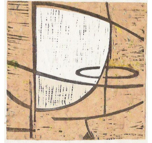 ABOVE: "Distant" - 6" x 6" woodcut and Chine Colle on Mulberry paper.