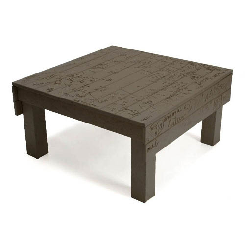 The "I was here" collection designed by Jason Miller will take you back to that one summer at (band?) camp when you carved your name into the camp picnic tables. The collection features various tables and a bench constructed from "graffiti-proof" plastic wood with all sorts of random New York graffiti carved into the top of them. Available colors include white, black, brown, and blue.
