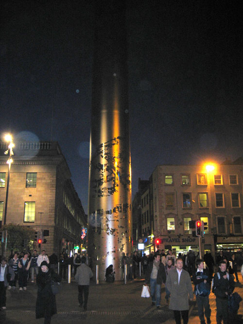 When I visited Dublin in the fall of 2001, the Spire was nothing more than a hole in the ground. The finished monument I saw when I returned in 2005 felt curiously at home in its surroundings, as if O'Connell Street felt complete.