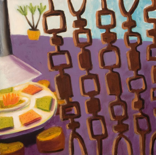 "FIRESIDE" 2007, oil on board, 12" x 12"