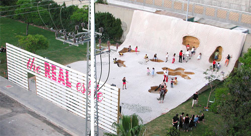 Cutouts and niches in an undulating concrete blanket invite the visitor to claim temporary ownership of the spaces. Located in Bat-Yam, Israel, “The REAL estate examines the boundaries between public and private domains in the urban landscape. The concept of “temporary private spaces” relates to places in the public domain we possess temporarily (such as taking ownership of a park bench for a few minutes or of the sand at the beach through spreading your towel out).