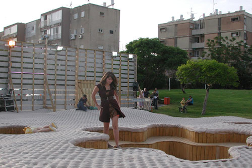 Architect Avi Laiser and his wife, performance artist Dana Hirsch Laiser, investigate the concept of “temporary private space” by transforming a forgotten piece of land adjacent to a major highway into a vibrant and innovative playground for the surrounding community.