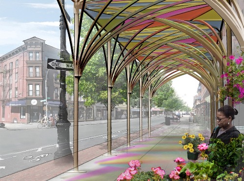 Sheds are built to protect pedestrians walking alongside buildings under construction, and the current wood and steel scaffold designs has remained primarily unchanged since the 1950s. With approximately 6,000 sidewalk sheds in New York City, representing more than 1 million linear feet, it is easy to see how greatly construction sheds affect the urban landscape. The Urban Umbrella design is intended to improve quality of life, reduce construction impacts on businesses, increase pedestrian safety, and increase available space for pedestrians on sidewalks.